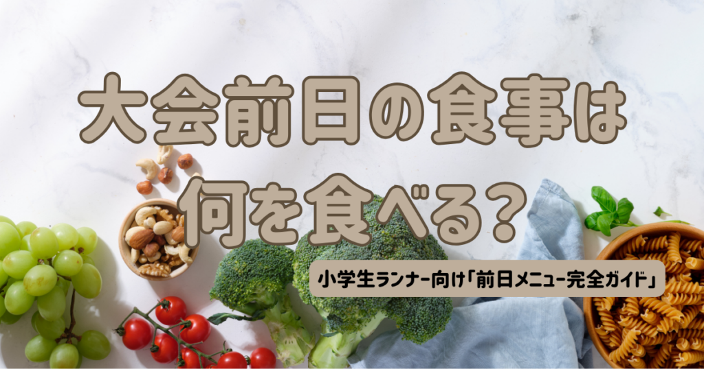 大会前日、「何を食べさせればいいの?」と悩む保護者はとても多いですよね。小学生ランナーにとって前日の食事は、走力そのものよりも当日のパフォーマンスを左右する重要な準備です。この記事では、アスリートフードマイスターの視点と、長距離に挑戦す... -